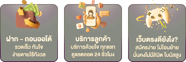 เว็บไซต์มีระบบฝาก-ถอนอัตโนมัติที่รวดเร็ว ทำรายการได้ตลอด 24 ชั่วโมง พร้อมโปรโมชั่นและโบนัสมากมายสำหรับสมาชิกทุกระดับ ทีมงานคอยให้บริการและช่วยเหลือตลอดเวลาผ่านช่องทางไลน์และเว็บไซต์